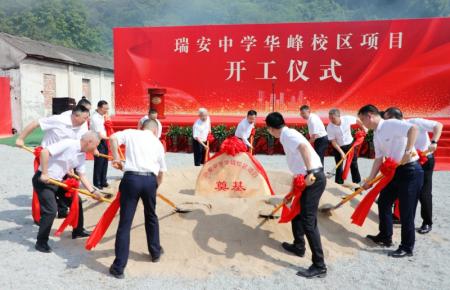 瑞安市领导秦肖、应希克、施巨耀、李辅正等,以及华峰集团董事局主席尤小平、总裁林建一,瑞安中学校长王安国等出席开工仪式,并共同为项目开工建设培土奠基。