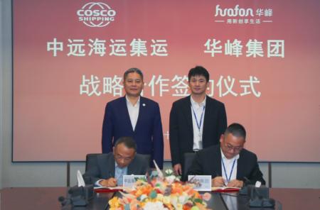 12月27日,华峰集团有限公司(以下简称“华峰”)与中远海运集装箱运输有限公司(以下简称“中远海运集运”)签署了战略合作协议,这标志着双方作为战略合作伙伴,将在长期合作互信的基础上,进一步拓展合作的深度广度。中远海运集运总经理张炜、华峰集团副总裁尤飞煌等领导作为代表出席签约仪式。