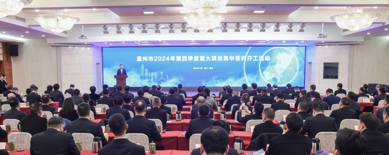 另讯 12月31日下午,温州市举行2024年第四季度重大项目集中签约开工活动,深入学习贯彻中央经济工作会议精神和省委十五届六次全会暨省委经济工作会议精神,按照市委十三届七次全体(扩大)会议暨市委经济工作会议部署要求,深入实施扩大有效投资“百项千亿”工程,坚持把“项目为王”摆在突出位置,掀起“大抓项目、大抓招商、大抓高质量发展”新热潮,为温州全力冲刺“双万”城市、提速打造“全省第三极”蓄势赋能。