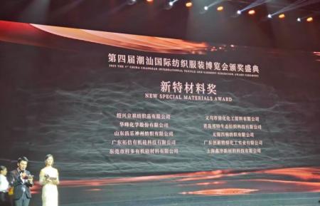 3月18日—20日,第四届潮汕国际纺织服装博览会在汕头国际会展中心盛大启幕。此次展会以“归潮”为主题,吸引了众多行业巨头齐聚一堂。首次参展的华峰化学股份有限公司,凭借千禧?多款氨纶材料及特色展品,在展会上大放异彩,成功揽获主办方颁发的“新特材料奖”。?