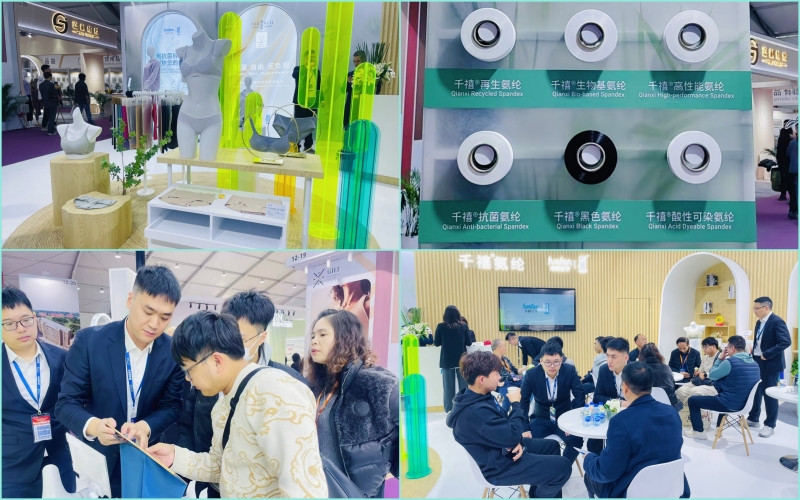 此次展会,华峰化学精心打造的展位令人眼前一亮,集中展示了以家居服和内衣裤为主的终端产品,展品均采用了千禧?旗下的再生氨纶、生物基氨纶、高性能氨纶、抗菌氨纶、黑氨纶以及酸性可染氨纶等创新材料。这些材料在功能性上的表现尤为卓越,如抗菌氨纶能有效抑制细菌滋生,为消费者提供更健康的穿着体验;高性能氨纶则具备出色的弹性恢复力,使衣物久穿不变形。同时,在环保性方面,再生氨纶和生物基氨纶的应用,契合了当下纺织服装行业可持续发展的低碳环保潮流。此外,在时尚感的搭配上,黑氨纶与酸性可染氨纶为设计师提供了更多创意空间,满足了不同消费者对于贴身衣物在外观和色彩上的多样化需求。这些独特优势,为纺织服装企业提供了创新原材料方案,助推行业绿色发展。