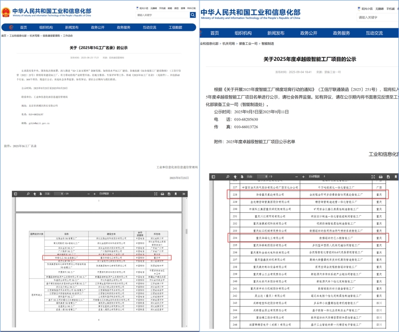 名单可见,重庆华峰化工“数据驱动的己二酸智能工厂”和华峰重庆氨纶“全流程全环节多场景数智协同氨纶智能工厂”成功上榜“卓越级智能工厂”公示名单;重庆华峰化工“5G全连接工厂项目”双料入围“2025年5G工厂”名录。
