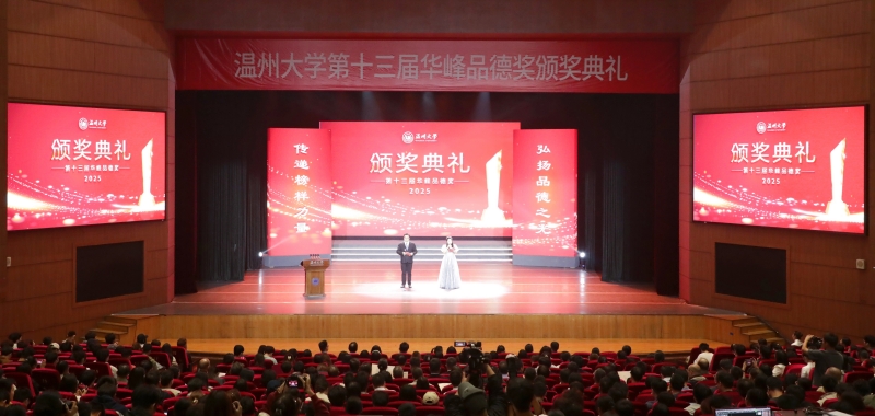 传递榜样力量,弘扬品德之光。10月29日下午,温州大学育英大礼堂内灯光璀璨,气氛庄重而热烈,温州大学第十三届“华峰品德奖”颁奖典礼在此隆重举行。千余名温大师生代表齐聚一堂,共同见证“文明道德之花”再度盛开。