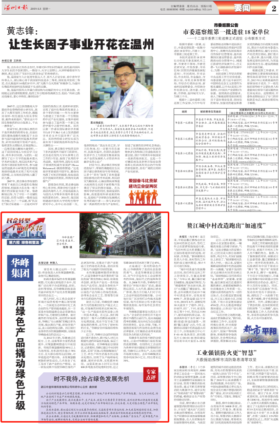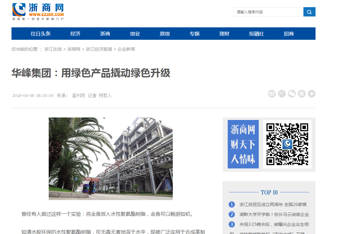 如清水般环保的水性聚氨酯树脂,可无毒无害地溶于水中,现被广泛应用于合成革制造、纺织、涂料等领域,而华峰集团就是温州市最早研发并产业化水性聚氨酯项目的企业之一。